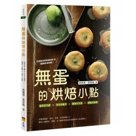無蛋烘焙的素食點心,書中分類為「最佳伴手禮」「平日小確幸」「優閒午茶點」「回憶小品味」涵蓋了西式的小點如:曲奇餅乾、義大利脆餅、司康等,也囊括入中式作法的巧果、糖麻花等多種品項,讓喜愛無蛋烘焙的你能一起做伙來同樂!