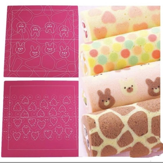 1. First spread the painted mat on the baking tray and coat with a layer of oil, pour the colored batter or fresh cream into the piping bag, and squeeze out your favorite pattern on the painted mat, then put it in the oven to bake