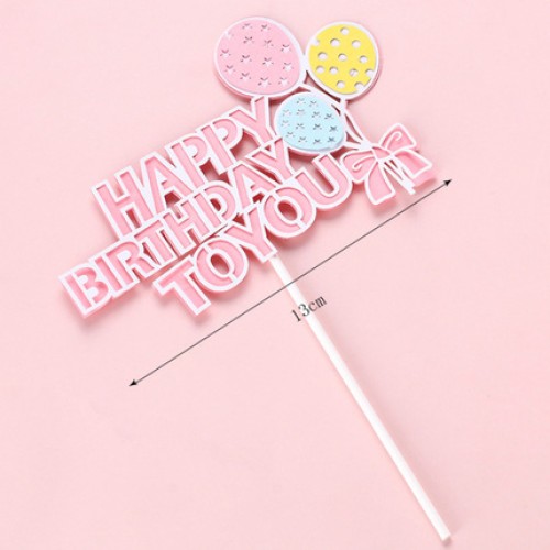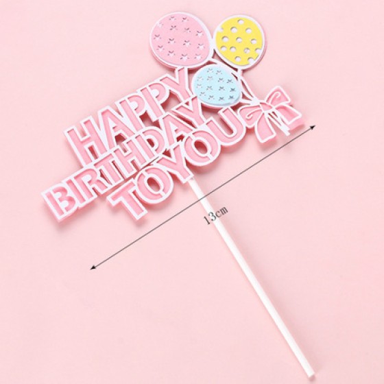 蛋糕裝飾卡 Happy Birthday氣球 14cm (粉紅 粉藍)