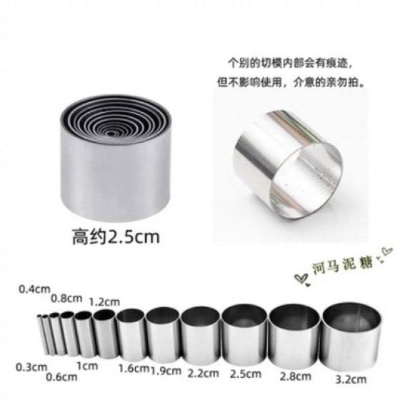 翻糖工具迷你圆形不锈鋼切模 12件套