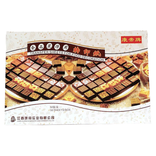 巧克力轉印紙上的漂亮圖案是採用原料繪制而成的,是可以食用的哦,圖案高雅,富有品味,是裝飾巧克力的理想產品,可使您的巧克力產品個性十足,且操作簡單,方便,可選用各種形狀模具,做出不同造型的巧克力個性產品。