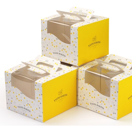 黃白4吋手提蛋糕盒 附底盤